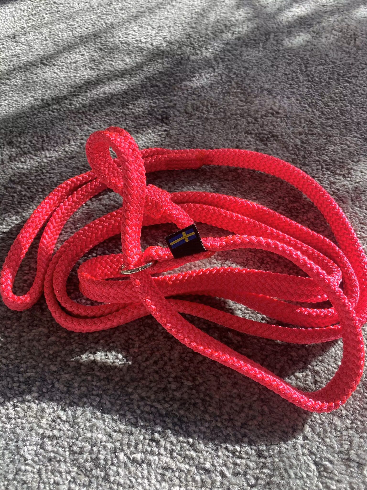 Retrieverkoppel som har en platt design som gör hundkopplet mjukt och behagligt att hålla i.