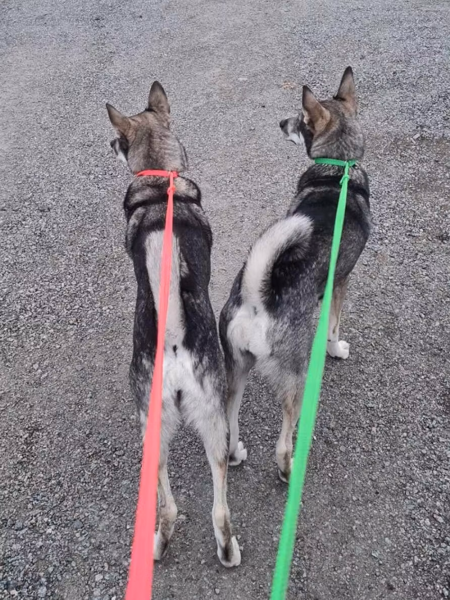 Kopplet har en reglerbar ögla närmast halsen på din hund.