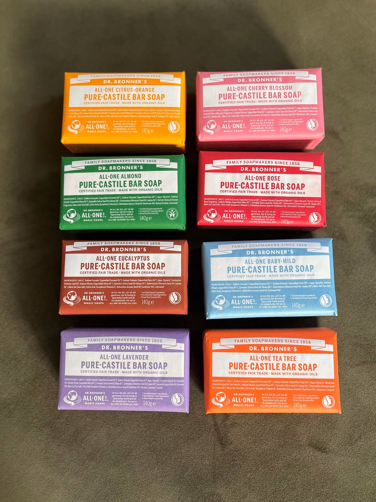 Det finns totalt 8 olika tvålar.